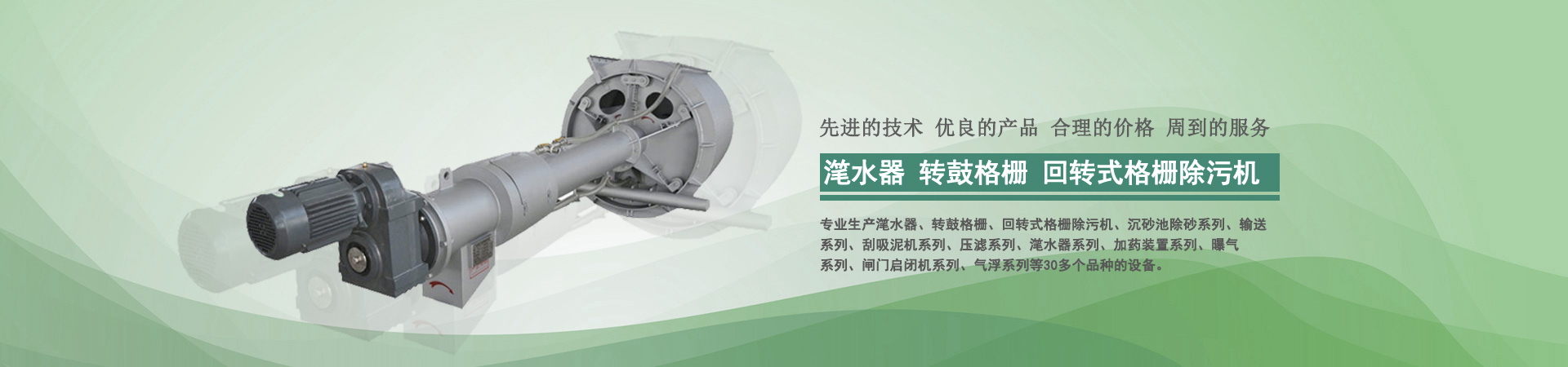 本公司目前專業(yè)生產(chǎn)轉(zhuǎn)鼓式精密過(guò)濾器、轉(zhuǎn)鼓格柵、回轉(zhuǎn)式格柵除污機(jī)、沉砂池除砂系列、輸送系列、刮吸泥機(jī)系列、壓濾系列、潷水器系列、加藥裝置系列、曝氣系列、閘門(mén)啟閉機(jī)系列、氣浮系列、曝氣器系列、填料系列等30多個(gè)品種的設(shè)備...